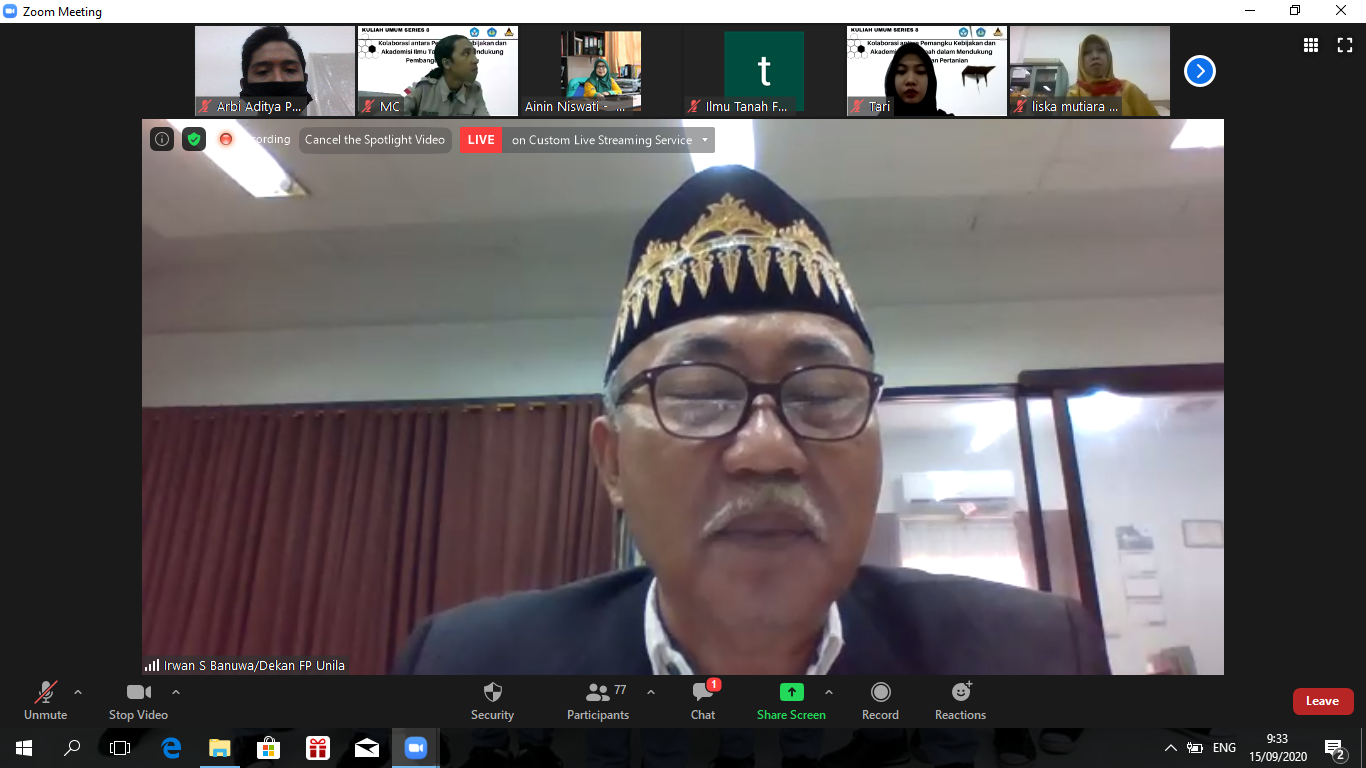 KULIAH UMUM SERIES 8 “KOLABORASI ANTARA PEMANGKU KEBIJAKAN DAN AKADEMISI ILMU TANAH DALAM MENUNJANG PEMBANGUNAN PERTANIAN”